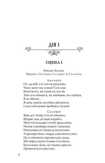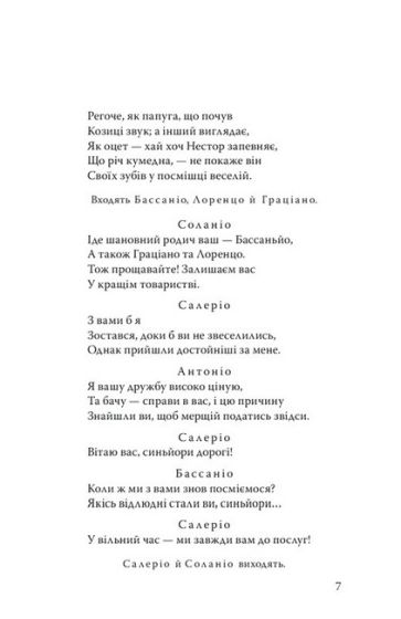 “Венеційський купець” — одна з найвідоміших комедій геніального англійського поета і драматурга Вільяма Шекспіра (1564-1616), у якій переплітаються дві сюжетні лінії — історія романтичного залицяння і спричинений жадобою помсти конфлікт, що ледь не призводить до трагедії. У легкій комедійній формі автор відтворює складну сутність людських стосунків і показує, якою мінливою може бути перевага однієї людини над іншою, адже часто все вирішує випадок. Однак молодість, кохання і жіноча проникливість та вигадливість здатні зарадити у будь-якій ситуації.