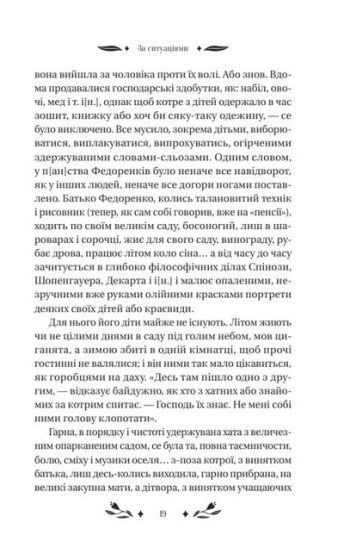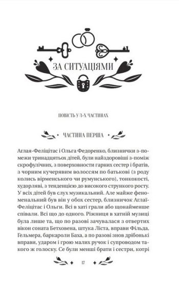 Жінка та її «взаємини» зі світом — головна тема прози Ольги Кобилянської. Щасливо вийти заміж чи знехтувати особистим щастям заради мистецтва? Це та точка, у якій фокусуються пошуки в повісті «За ситуаціями» й новелі «Ідеї». Фатальний збіг обставин, містичні знаки й сеанси гіпнозу переплітаються з розмовами про народ і музику, вибір життєвого шляху і хаос жіночої душі, гроші і зраду в різних її варіантах. І ще — два чоловіки, між якими неможливо знайти рівновагу дівчині з химерним характером і екзотичним ім’ям Аглая-Феліцітас у світі, що вже відчуває на собі подих Першої світової війни.