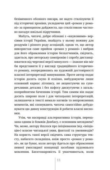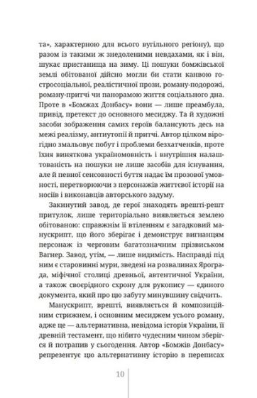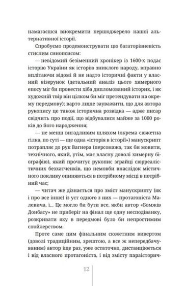 Роман поєднує реалізм та утопію. До товариства україномовних макіївських безхатченків потрапляє книга з альтернативною історією про державу, яка існувала тисячу років тому. Автор намагається вписати Донбас в контекст української історії з часів Хрещення Русі.