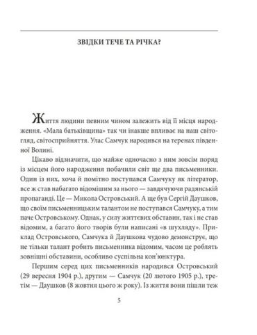 Один з найвизначніших українських письменників Улас Самчук народився 1905 року. Творчість його була широко відома в українській діаспорі, а на початку ХХІ століття нарешті почала повертатися на батьківщину. Недарма зарубіжні дослідники називали його «українським Гомером», вказуючи, що він відкрив світові досі невідому Україну. Самчук є автором шістнадцяти романів, серед яких трилогія «Волинь», «Гори говорять», «Марія», «Юність Василя Шеремети», «Чого не гоїть огонь» та багатьох інших, низки повістей, оповідань і статей. Він одним з перших розповів світові про трагедію Голодомору 1932—1933 рр. У 1980-х роках навіть йшлося про висунення Уласа Самчука на Нобелівську премію, але, на жаль, справу так і не було довершено...
