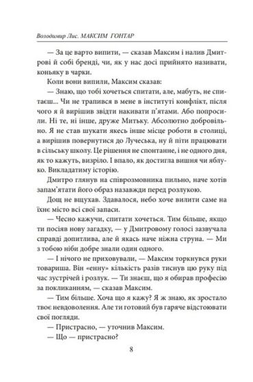 У його новому романі «Максим Гонтар» укотре переплітаються історичне минуле й сучасність, індивідуальні людські долі представників різних поколінь і суспільно значущі процеси, вічні цінності та новітні технології. Головний герой — молодий інтелектуал-нонконформіст, історик, науковець і публіцист, справжній патріот, який не лише на словах відстоює свої принципи, а й власними вчинками доводить вірність прадавнім героїчним традиціям свого народу. Відносини батьків і дітей, пошук свого місця в житті, розділене та нерозділене кохання, щира дружба й підступна зрада, пам’ять і забуття — ось далеко не повний перелік проблем і ситуацій, розв’язання яких розгортається на сторінках роману. Складні перипетії міжособистісних стосунків, роздуми, почуття й переживання персонажів твору, наших сучасників, проходять випробування часом і суворою реальністю подій в Україні ХХІ століття, коли їм урешті-решт самим доводиться творити історію та ставати її часткою…
