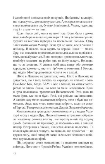 Тут вона виховує особливу дитину Розетту, керує власною крамницею шоколаду й нарешті стає частиною спільноти. Навіть священник Рейно майже подружився з нею. Та все змінює раптова смерть флориста Нарциса, який несподівано залишає Розетті спадщину, а Рейно — письмову сповідь у гріхах. Життя містечка знову перетворюється на хаос.