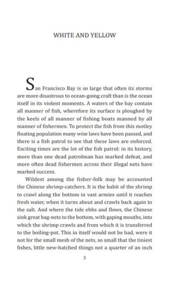 «Tales of the Fish Patrol» is a collection of short stories by the American classic writer Jack London (1876–1916). In the center of the plot is the activity of the local “fish patrol” in San Francisco Bay. These works are largely based on real events. The story “White and Yellow,” in particular, is a description of an experience from the life of Jack London himself.