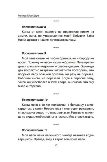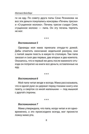 Известный современный украинский живописец, график, книжный иллюстратор Матвей Семёнович Вайсберг (род. 28 декабря 1958, Киев) обладает, как оказалось, еще одной гранью таланта — он прекрасный мемуарист. Его книга «Продолжение следует... Воспоминания» написана не менее ярко, чем знаменитые картины художника.