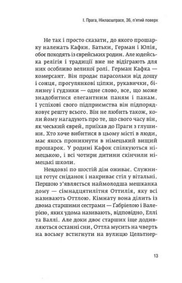 Він був ніжним, чутливим і боязким, та геть нещадним у текстах. Завжди обирав листування, а не особисті зустрічі. Не їв м’яса і знав усі вегетаріанські ресторани Праги. Їздив у санаторії для нудистів, але сам ніколи там не роздягався. Мріяв про власну родину, але розривав кожні свої заручини. Терпіти не міг пишномовність та імперський стиль у меблях і літературі. Вважав, що ти не побував у країні, поки не скупався у місцевій річці чи озері. Він був, імовірно, найсильнішим письменником своєї епохи і людиною, яку ви, дуже ймовірно, полюбите.