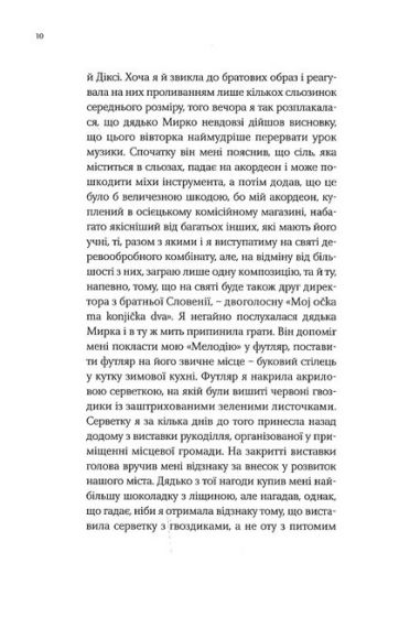 Що означають спогади про дитинство і юність у Славонії 1960–70-х років? Повернення в час, де не було війни, а була дружба з однокласниками, шоколадки з горішками, футбольні матчі, картаті спіднички і перші закоханості? І так, і ні. Все це було. Але ця збірка оповідань — не історії про золоті безтурботні часи. Це погляд дорослої жінки на своє формування. У ньому багато любові, змішаної з образою, і багато вдячності, змішаної з почуттям провини. Але насамперед у ньому зрілість і готовність, можливо, вперше бути чесною перед іншими і перед самою собою.
