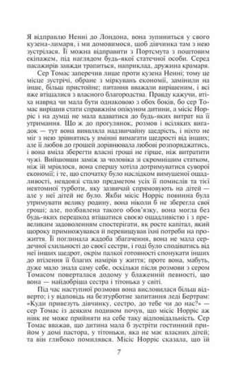 У маєтку Менсфілд-парк, куди взято на виховання Фанні Прайс, панують незгода і непорозуміння. Користь і егоїзм стають тут рушійною силою всіх вчинків людей. Проте завдяки доброті, безкорисливості й стійкості Фанні вдається подолати всі перешкоди, страждання допомагають їй віднайти саму себе і зустріти своє щастя.