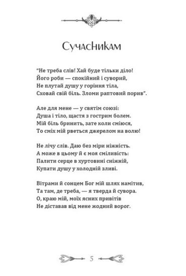 Поезії Олени Теліги – це енергія життєствердження, оптимізму й натхнення. Бути сильною, сховати біль, віддати перевагу дзвінкому сміху – така прерогатива ліричної героїні. Завжди можна знайти приводи для радості, яка втілюється у метафоричному образі безжурного вітрогона-хлопчини. Твори поетеси символічні, для них характерним є багатий асоціативний ряд та метафорика.