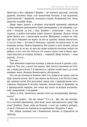 "Собаче серце" — один з найвідоміших і улюблених читачами творів Михайла Булгакова. Повість про незвичайний експеримент вченого, який задумав операцію з пересадки людського гіпофізу собаці з метою створення нової особистості в оновленому суспільстві.