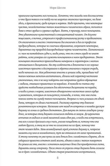 Виктору Франкенштейну удается вдохнуть жизнь в неживую материю, но дело его рук оказывается страшным чудовищем. Другими выдающимися произведениями писательницы являются «Последний человек», «История шестинедельного путешествия», «Судьба Перкина Уорбека», «Лодор», «Фолкнер» и «Вальперга, или Жизнь и приключения Каструччо, князя Лукки». Мэри Шэлли считают основоположницей научно-фантастической литературы.