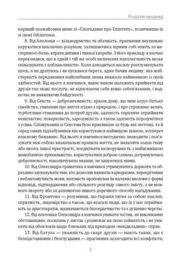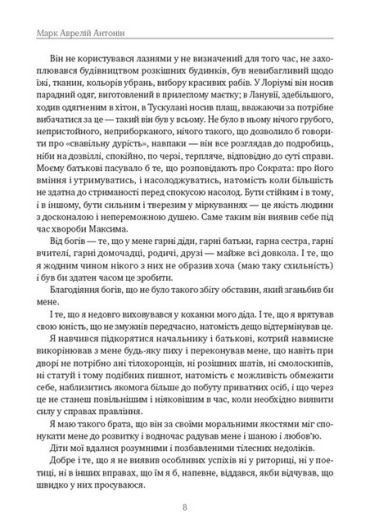 «Роздуми наодинці» — це особисті записи римського імператора Марка Аврелія Антоніна, зроблені ним в 70-і рр. нової ери. Імператор вів щоденник, де розмірковував щодо понять громадянськості, обов’язку, честі, совісті, вірності і справедливості. На сторінках цього надзвичайного документа ми спостерігаємо напружену роботу особистості з опанування філософії стоїків та з практичного розвитку стоїчної традиції. Таким чином, щоденник Марка Аврелія — один з перших в історії людства приклад літератури про самовдосконалення. Тому «Роздуми наодинці» Марка Аврелія стали однїєю з найбільш популярних пам’яток світової літератури. Творчість античного філософа і керівника імперії приваблює сучасних читачів мудрими міркуваннями, образністю і часом напрочуд актуальними практичними рекомендаціями.