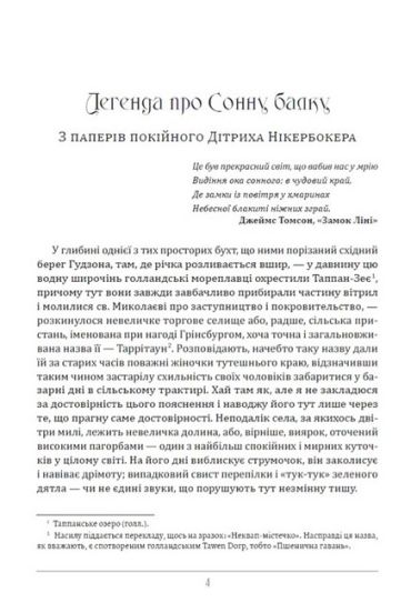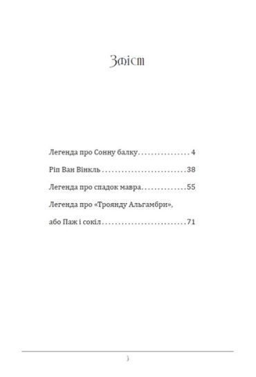 До цієї книги ввійшли найбільш відомі оповідання і новели класика американської літератури Вашингтона Ірвінга: «Легенда про сонну балку», «Ріп ван Вінкль» та новели-казки зі збірки новел «Альгамбра». Саме збірка новел «Альгамбра», присвячена легендам історії іспано-мавританського співіснування, вважається вершиною творчості автора. Поєднавши ілюзію та буденність, Ірвінг визначив шляхи розвитку американського романтизму та назавжди увійшов в історію світового письменства як один із перших класиків американської літератури.