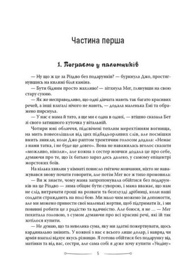 У цьому виданні публікується новий оригінальний переклад з англійської Юлії Шматько. Стилізація речей юних дівчаток, характерна для тієї епохи, а також придумані героїнями і використовувані в повсякденні слова додають тексту неповторної атмосфери XIX століття.