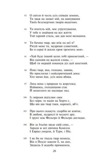 Плід усього життя «Суворого Данта» (так назвав геніального італійця Пушкін), творіння, яке в епоху середньовіччя стало передвісником Відродження, праця, що стоїть у ряду найбільших досягнень людської думки, — так говорили, говорять і говоритимуть про твір, який сам Данте Аліг'єрі (1265—1321) назвав просто «комедією», а його нащадки нарекли «Божественною». У своєму найграндіознішому витворі в символічно-алегоричній формі поет зобразив драматичну долю людської душі: її загибель у пеклі, переродження в чистилищі, тріумф у раю. З моменту появи «Божественної комедії» минуло вже понад сім століть, але історики й критики досі не припиняють суперечки про те, що ж це: «путівник» загробним світом (в уявленні звичайної земної людини) або щось інше, спроба людського генія пізнати непізнаване, знайти раціональне в ірраціональному, показати людям шлях від мороку і скорботи до світла і радості. У будь-якому разі, «Божественна комедія» — це класика, яка буде жити вічно.