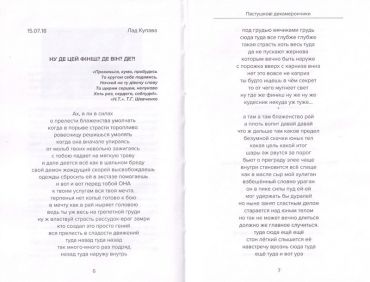 Буколіки - жанр пастушої пісні про любов, коріння якого сягає часів давньогрецького поета Теокрита. Українські інтимні «буколіки» автора й одночасно головного героя це відверті спогади про те, як підліток поступово ставав чоловіком, про статеві особливості та інтимні таємнички юнака. Не обходили головного героя й питання вибору сексуальної орієнтації. Також автор відтворює картини життя в далекі радянські часи, де писати про подібне вважалось аморальним, й радіє, що його не «осусідили» і він може писати вірші рідною мовою. Назва віршованої збірки «Пастушкові декамерончики» за Боккаччо ніби запрошує читача до сокровенних розповідей. Інтригують пісні без розділових знаків на початку збірки. Тож, нумо знайомитися з цією оригінальною книгою!