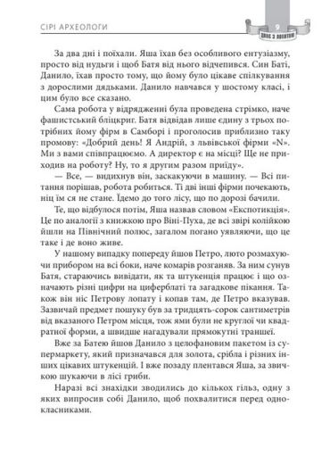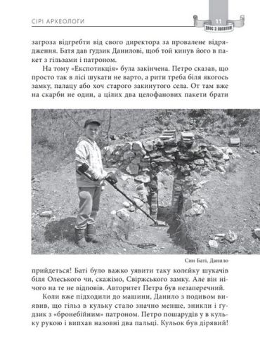 «Сірі археологи» — це перша книга трилогії про неймовірні пригоди двох кумів, які за допомогою металошукача упродовж багатьох років шукають скарб. Назва трилогії — «Двоє з лопатою», бо, власне, кумів двоє. Яша та Батя мають свою, іноді дещо дивно філософію життя, можливо, тому весь час потрапляють у різноманітні пригоди. Іноді доля усміхається їм, і кумам вдається знаходити цікаві старовинні речі. Але як ці предмети опинились на цьому місці? Книга допоможе читачу припідняти завісу століть і дізнатись про це.