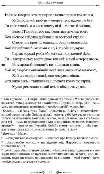 У «Ліках від кохання», на противагу «Мистецтву кохання», тобто вмінню полюбити і зберегти любов, Овідій навчає, як позбутись любовної пристрасті. Втім, уславлений «співець ніжних любощів» виходить далеко за межі жартівливої теми: поема засвідчує глибоку ерудицію поета,який вражає широтою своїх зацікавлень, насамперед, – таємницями людської душі, особливо жіночої. Крізь тонкий інтелектуальний гумор і блискучу гру слів проглядає подекуди й гірка правда життя, тож і сьогодні цей Овідіїв твір – і цікавий, і пізнавальний.