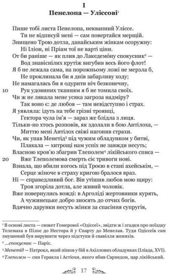 «Героїди» («Листи героїнь») — унікальний у римській поезії, створений Овідієм епістолярний жанр. Міфічні героїні, насправді ж реальні жінки, у формі ліричного монологу виливають свої переживання, викликані розлукою з чоловіками чи коханцями. Автор «Героїд», тонкий психолог, майстер риторичної й декламаційної поезії, «інсценізує» вражаючий розмаїттям і багатством емоцій світ жіночої душі. Усе це «дійство» — на тлі макросвіту: суходолу, моря і неба. «Героїди», у своїй психологічній заглибленості, — наче відлуння голосів грецьких трагіків, які теж, просто неба, оспівували вічне — любов і страждання.