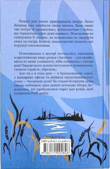 Але чи є в тому раю — в брендованому одязі, у шикарних офісах та автівках представницького класу — безгрішні душі? Бо тільки безгрішна душа зможе побачити двох вояків гетьмана Петра Дорошенка, які пробудилися через 340 років, щоб відшукати РАЙ.центр.
