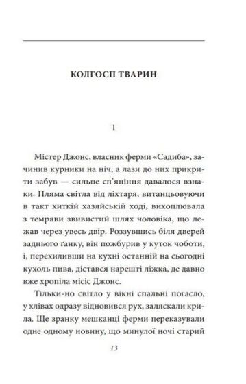 Джордж Орвелл (1903-1950) — британський письменник і журналіст. Його творча спадщина налічує 20 томів і перекладена на 60 мов. Однак всесвітньо відомим він став наприкінці свого життєвого шляху, коли 1945 року надрукував казкову повість, а радше алегоричну притчу про зародження тоталітарного режиму в СРСР «Колгосп тварин». У передмові до українського видання – варто нагадати, що першим перекладом «Колгоспу тварин» з англійської на іншу мову був український, автор зазначив: для нього дуже важливо, щоб люди на Заході побачили радянський режим таким, яким він є. І зробив це блискуче. Головні герої книжки – тварини, яких їхні поводирі – розумні свині, підбурили розпочати повстання проти господаря-нехлюя. Та захопивши владу, вся та свинота одразу взялася наслідувати найгірші людські порядки.