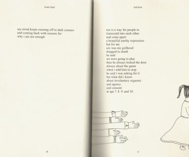 rupi kaur constantly embraces growth, and in home body, she walks readers through a reflective and intimate journey visiting the past, the present, and the potential of the self. home body is a collection of raw, honest conversations with oneself - reminding readers to fill up on love, acceptance, community, family, and embrace change. illustrated by the author, themes of nature and nurture, light and dark, rest here.