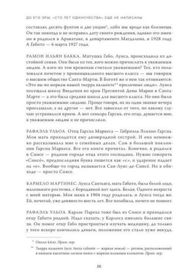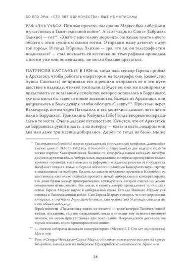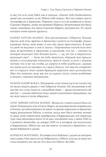 Если вы желаете получить истинное наслаждение от этой книги, то отложите на время убеждение в том, будто бы все в жизни имеет одно-единственное правдивое толкование. Следуя закону жанра, устная история сталкивает правду одного человека с правдой другого и даже противопоставляет их. В этом, в частности, и заключено ее очарование. С такой мыслью в голове и стаканчиком виски со льдом в руке или бокалом шампанского (каковому, как мне говорили, сам Габо отдавал предпочтение) ступайте на этот праздник. Если жаждете всей полноты впечатлений, подойдите к книжному шкафу и достаньте свой экземпляр «Ста лет одиночества», а за неимением такового — прогуляйтесь до ближайшего книжного магазина и купите. Прочтите его снова или в первый раз — теперь, когда узнали обо всех любопытных фактах и несообразностях, тайных пружинах и страстях в подоплеке этого романа, названного «пожалуй, самым филигранным и самым знаменитым произведением — классикой мировой литературы на все времена».