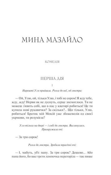 Одного дня харківський службовець Мина Мазайло вирішує: необхідно негайно змінити своє прізвище. Бо від цього українського, селянського «Мазайло» самі клопоти та неприємності, і взагалі. Хіба можна ставитися серйозно й поважно до людини з таким прізвищем? Варто змінити його на «Мазенін». Тоді все зміниться, жити стане краще, зникнуть проблеми. Це рішення спричиняє справжню війну всередині родини, перетворюючи рідних людей на ворогів. Також до збірки увійшли п’єси «Маклена Граса», «97», «Патетична соната».
