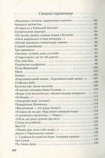 До книги Ліни Костенко — улюбленої української поетеси кінця другого–початку третього тисячоліття — увійшли найвідоміші її вірші з різних періодів творчості — від ранньої поезії до сьогодні, а також уривки з романів та поем. Це найповніше вибране поетеси за часів Незалежності.