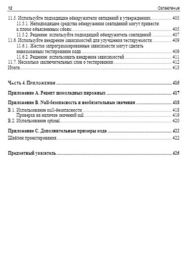 В книге изложены приемы и методы, обязательные при грамотном объектно-ориентированном программировании. Следование приведенным паттернам проектирования защитит программу от ошибок, проблем с совместимостью, неожиданных и непонятных отказов, а также обеспечит модульность кода. Рассмотрены примеры на языке Java, легко адаптируемые для C#, пояснены приёмы тестирования, развития и адаптации кода с учётом меняющихся требований.