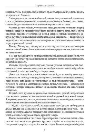 «Парижский сплин» — это сборник стихотворений в прозе — классический образец такого жанра. Париж Бодлера — таинственный и сумрачный, полуреальный и полумистический. Он весь — в видениях сна или наркотического бреда. Ибо в этом глубоко социальном произведении поэт описывает нищету, болезни, убогость и страдания людей, вынужденных существовать «на дне» большого города. Также автор рассказывает о чувствах парижан, которым выпало жить в «эпоху упадка».