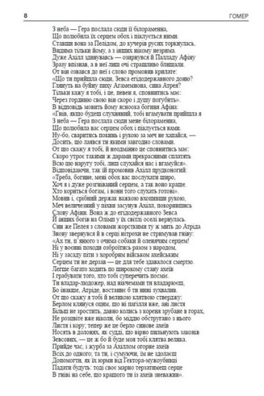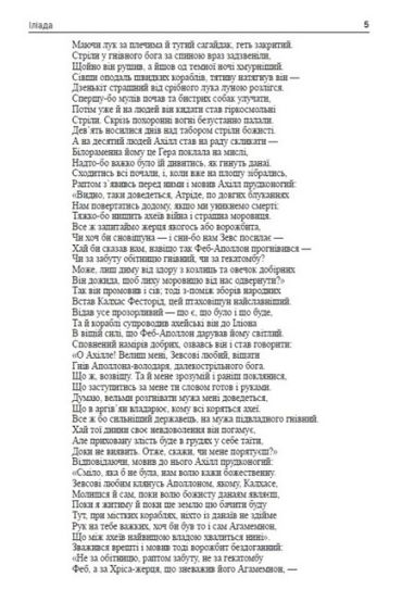 Авторство «Іліади» приписують Гомеру. Ця поема є найдавнішою зі збережених пам’яток грецької літератури. «Іліада» є переробкою й об’єднанням численних переказів Стародавньої Греції про подвиги давніх героїв. У цій героїчній поемі викладено події десятого року облоги Трої (Іліона) об’єднаним військом грецьких вождів. Сказання про попередні події (викрадення Єлени Парісом, виступ греків (ахейців) під верховним начальством Агамемнона), постаті головних вождів (Агамемнон, Менелай, Ахілл, Одісей, Нестор, Діомед, Аякс, Ідоменей та ін., троянський цар Пріам, його сини Гектор, Паріс і т. д.), так само, як і результат війни (загибель Трої), заздалегідь в «Іліаді» є відомими. Іліада охоплює лише незначний проміжок часу — епізод з історії облоги Трої.