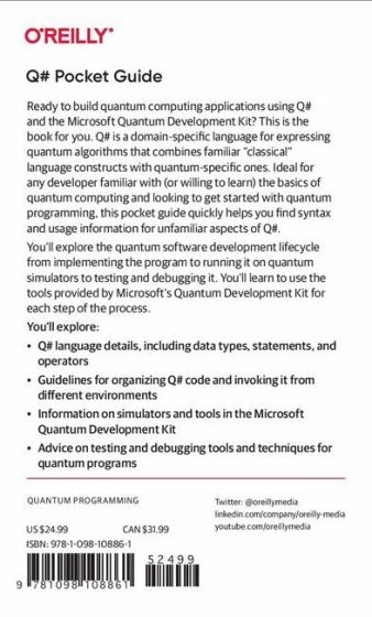Ready to build quantum computing applications using Q# and the Microsoft Quantum Development Kit? This is the book for you. Q# is a domain-specific language for expressing quantum algorithms that combines familiar "classical" language constructs with quantum-specific ones. Ideal for any developer familiar with (or willing to learn) the basics of quantum computing and looking to get started with quantum programming, this pocket guide quickly helps you find syntax and usage information for unfamiliar aspects of Q#.