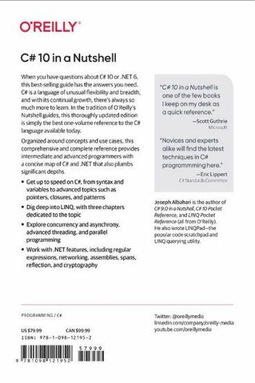 When you have questions about C# 10 or .NET 6, this best-selling guide has the answers you need. C# is a language of unusual flexibility and breadth, and with its continual growth, there's always so much more to learn. In the tradition of O'Reilly's Nutshell guides, this thoroughly updated edition is simply the best one-volume reference to the C# language available today.