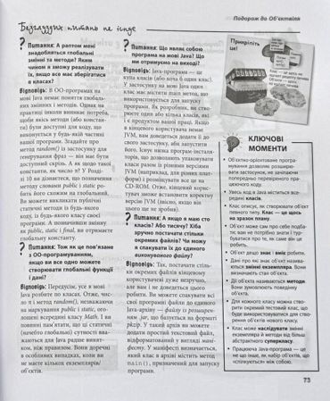 «Head First. Java» — це вичерпний навчальний посібник, який надасть Вам досвід роботи з Java та об’єктно-орієнтованого програмування. Ця книжка допоможе вам вивчити мову Java унікальним методом, що виходить за рамки синтаксису та інструкцій з експлуатації і допомагає зрозуміти, як стати неперевершеним розробником. Ви опануєте основи мови, отримаєте загальну інформацію, засвоїте роботу з потоками, мережевою взаємодією та розподіленим програмуванням, і навіть побудуєте гру «Sink The Dot Com», а також створите барабанний музичний чат. Окрім захопливого стилю, що одразу поглинає вас, у «Head First. Java» міститься величезна кількість практичних речей, які інші посібники залишають поза увагою. Розумно, іронічно, сучасно та практично — не так уже багато існує видань, що здатні похвалитися цими якостями.