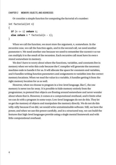 You’ll see how pointers are used to provide vital C features, such as strings, arrays, higher-order functions and polymorphic data structures. Along the way, you’ll cover how pointers can optimize a program to run faster or use less memory than it would otherwise.