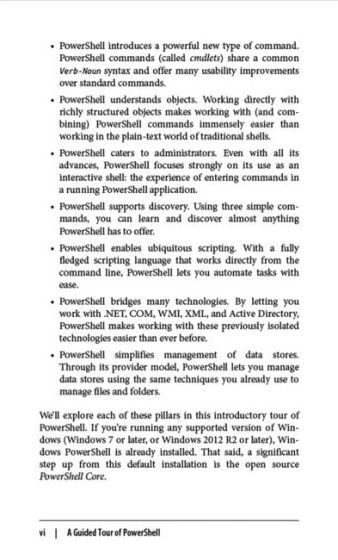 Written by PowerShell team member Lee Holmes and excerpted from his PowerShell Cookbook, this edition offers up-to-date coverage of Windows PowerShell 5.1 and open source PowerShell Core up to 7 and beyond.