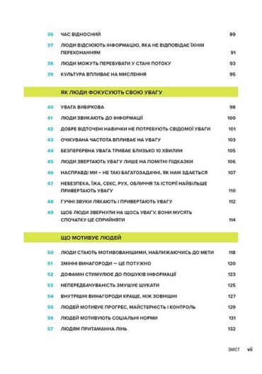 Ми розробляємо дизайн, щоб отримати реакцію від людей. Ми прагнемо, щоб вони щось купили, прочитали більше чи здійснили певну дію. Розробляти дизайн без розуміння, що змушує людей діяти певним чином – усе одно, що досліджувати нове місто без мапи: результати будуть безсистемними, заплутаними й неефективними. У цій книзі поєднано справжні наукові дослідження з практичними прикладами, тож це посібник — необхідний кожному дизайнеру. З ним ви зможете створювати інтуїтивно зрозуміліші та цікаві застосунки, програмне забезпечення, вебсайти та продукти, які відповідають тому, як люди думають, ухвалюють рішення та діють.