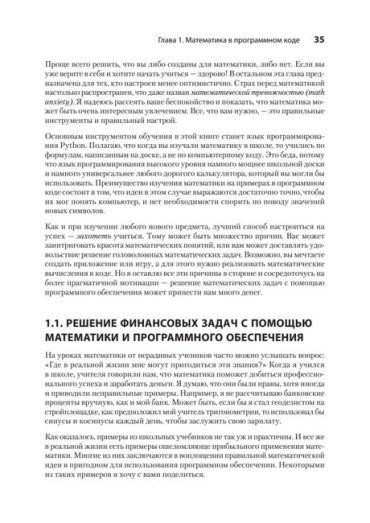 - В каждой главе дается пример практического применения математической концепции, дополненный упражнениями и мини-проектами.
