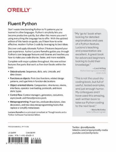 Don’t waste time bending Python to fit patterns you learned in other languages. Discover and apply idiomatic Python 3 features beyond your past experience. Author Luciano Ramalho guides you through Python’s core language features and libraries and teaches you how to make your code shorter, faster, and more readable.