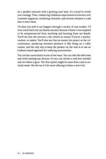 Whether you’re an entrepreneur, UX/UI designer, product manager, or part of an intrapreneurial team, this book teaches simple to advanced strategies that you can use in your work right away. Along with business cases, historical context, and real-world examples throughout, you’ll also gain different perspectives on the subject through interviews with top strategists.