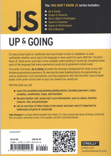 The series' first book, Up & Going, provides the necessary background for those of you with limited programming experience. By learning the basic building blocks of programming, as well as JavaScript's core mechanisms, you'll be prepared to dive into the other, more in-depth books in the series—and be well on your way toward true JavaScript.
