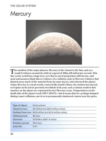 Після «Великого вибуху» Всесвіту знадобилися мільярди років, щоб перетворитися на унікальну систему зірок і планет, про яку ми знаємо сьогодні. Вчені вивчали планети нашої сонячної системи протягом століть і починають розуміти мільярди зірок та інших тіл, які утворюють Всесвіт. «Зірки та планети» — ідеальний довідник для всіх, хто цікавиться астрономією, містить 300 найвідоміших зірок, планет, місяців, сузір’їв та інших космологічних явищ, таких як чорні діри та квазари. Кожен запис містить зображення – або фотографію, або відбиток художника, чи діаграму – і таблицю основної інформації, включаючи такі характеристики, як маса, радіус, температура поверхні, відстань до сонця, сила тяжіння та основні елементи кожного об’єкта. Поданий у зручному кишеньковому форматі, сповнений фактами та захоплюючим текстом, «Зірки та планети» є цінним довідковим джерелом, а також захоплюючим читанням, яке розкриває вражаючий світ Космосу.