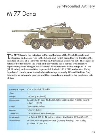 Military Vehicles — це широкий путівник у світ військової мобільності у ХХ столітті та за його межами. У 300 детальних записах він досліджує бойові, транспортні та допоміжні машини, які підтримували військові частини від Першої світової війни до наших днів. Категорії включають бронетранспортери, бронеавтомобілі, зенітні машини, винищувачі танків, вантажівки та транспортери, машини-амфібії, самохідну артилерію тощо. Від ранніх броньованих машин, таких як німецький Bussing A5P і російські броньовані автомобілі Garford-Putilow, до передових машин, таких як італійський MICV Dardo та німецький LGS Fennek, Military Vehicles досліджує розвиток цієї потужної зброї війни. Кожен представлений транспортний засіб проілюстрований повнокольоровим зображенням бічного профілю. Пояснюється історія обслуговування та основні характеристики машини, а в докладній таблиці специфікацій перераховуються країна походження, екіпаж, вага, розміри, броня, озброєння, силова установка та характеристики. У книзі також міститься вступна історія розвитку військової техніки з 1900 року до сьогодні та повний глосарій технічних термінів і скорочень. Військові транспортні засоби, представлені у зручному кишеньковому форматі, — це барвистий посібник, який зацікавить будь-якого ентузіаста військової техніки та моделювання.