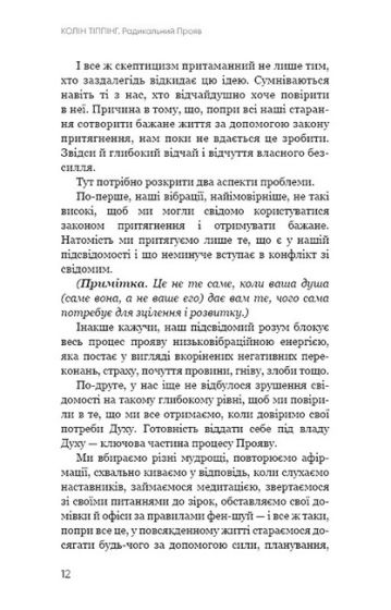 У книзі не йдеться про «програмування» або ж «депрограмування» підсвідомості. Автор докладно й покроково пояснює, як ви зможете використати власний духовний інтелект, щоб посилити й реалізувати ваші життєві наміри.