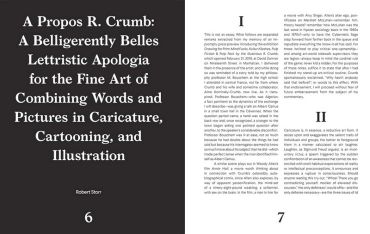 Зігравши важливу роль у формуванні андеграундної сцени коміксів у Сан-Франциско в 1960-х і 1970-х роках, Крамб розірвав і розширив межі графічного мистецтва, переосмисливши комікси та мультфільми як контркультурні форми мистецтва. Представляючи шматочок унікального всесвіту Крамба, ця книга містить широкий спектр друкованих матеріалів, зібраних із п’ятидесятилітньої кар’єри художника — аркуші малюнків і коміксів, узяті безпосередньо з публікацій, де вперше з’явилися роботи, обкладинки коміксів, сторони з 1960-х і 1970-х років і таблоїди з Хейт-Ешбері, Окленда, Нижнього Іст-Сайду та інших контркультурних анклавів, а також ефемери виставок. Цей том доповнюють історичні твори вісімнадцятого та дев’ятнадцятого століть, які надихнули Крамба, а також сторінки з його рідкісних альбомів для малювання з 1970-х і 1980-х років, які розкривають його зразкову майстерність кресляра.