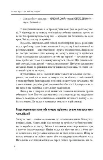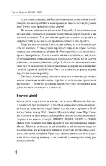 У книжці «Мій бос — ідіот» Еріксон поділяє начальство за способом їх керування, спілкування та поведінки на чотири кольорових типи — червоний, жовтий, зелений і синій. Він описує теорії та методи, за допомогою яких люди на своїх робочих місцях вибудовують функціональне діалогічне спілкування.