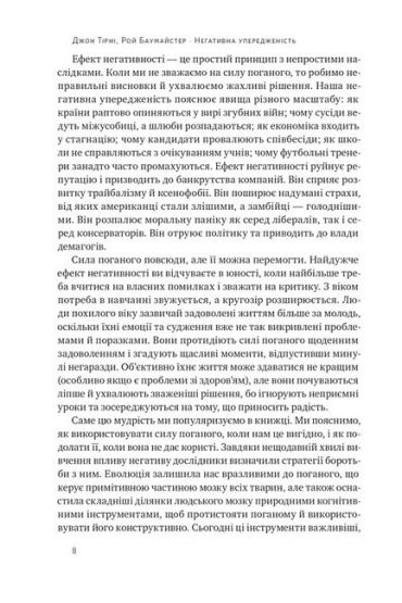 Чому нас спустошують слова критики, навіть якщо вони змішані зі щедрою похвалою? Тому що наш мозок сконцентрований на поганому. Цей негативний ефект пояснює велике і мале: чому країни впадають у катастрофічні війни, чому пари розлучаються, чому люди пропускають співбесіди на роботу, чому футбольні тренери тупо кидаються на четверте місце. Протягом усього дня сила поганого керує настроєм людей, стимулює маркетингові кампанії та домінує в новинах та політиці.