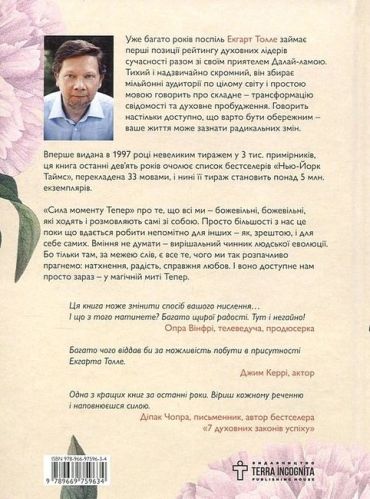 Ця книга про важливість уміння не думати. Бо тільки там, за межею слів, є все те, чого ми так розпачливо прагнемо: натхнення, радість, справжня любов. І воно доступне нам вже і негайно - у магічній миті Тепер.