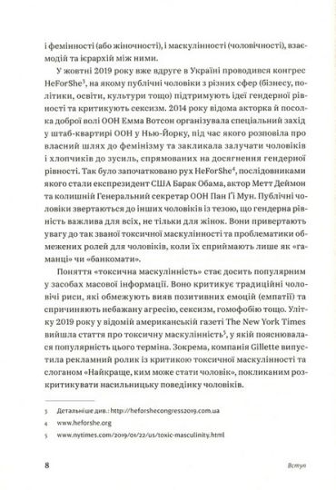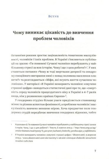 Якими чоловіки бачать себе і якими їх бачать інші, чого від них сподіваються і вимагають, за що засуджують і карають, як це позначається на можливостях самореалізації в суспільстві та загальній якості життя, як історично розвивалися уявлення про маскулінність і чому нині можемо говорити про кризу маскулінності — Тамара Марценюк пропонує відповіді на ці та багато інших запитань, спираючись на широку джерельну основу та власну дослідницьку роботу. Попри строгу систему викладу та численні посилання — як на академічні праці, так і на приклади з масової культури, зокрема список фільмів, рекомендованих до перегляду, — це не підручник, а радше захопливий довідник, що допоможе зорієнтуватися тим, для кого ця тема нова, і впорядкувати свої знання читачам і читачкам, які цікавляться питаннями гендеру.