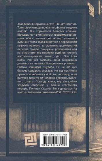 Слідчий Олег Самчук отримує чергове завдання: відшукати зниклу жінку, слід якої губиться у Чернівцях. Однак у пошуках Оксани він відкриває щось лячне в собі. Пристрасть чи любов, усталене життя чи привабли-вість змін, убивство чи самопожертва – на такі питання мають знайти відповіді персонажі. Кримінальна драма «Нуар по-українськи» — це другий роман Симора Гласенка, дослідника людських відносин та життєвих виборів.